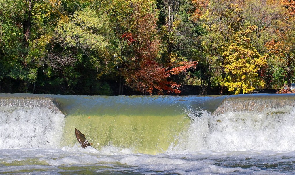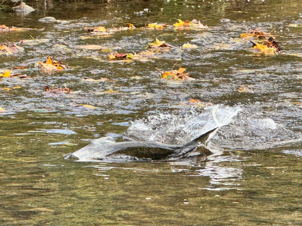 Nature has been glorious this past week. Not only were the colours astonishing (see next section), but we’ve seen critters not often glimpsed in our usual haunts. A recent walk along Highland Creek featured 4-legged AND finned denizens (not in the same animal). See for yourselves…