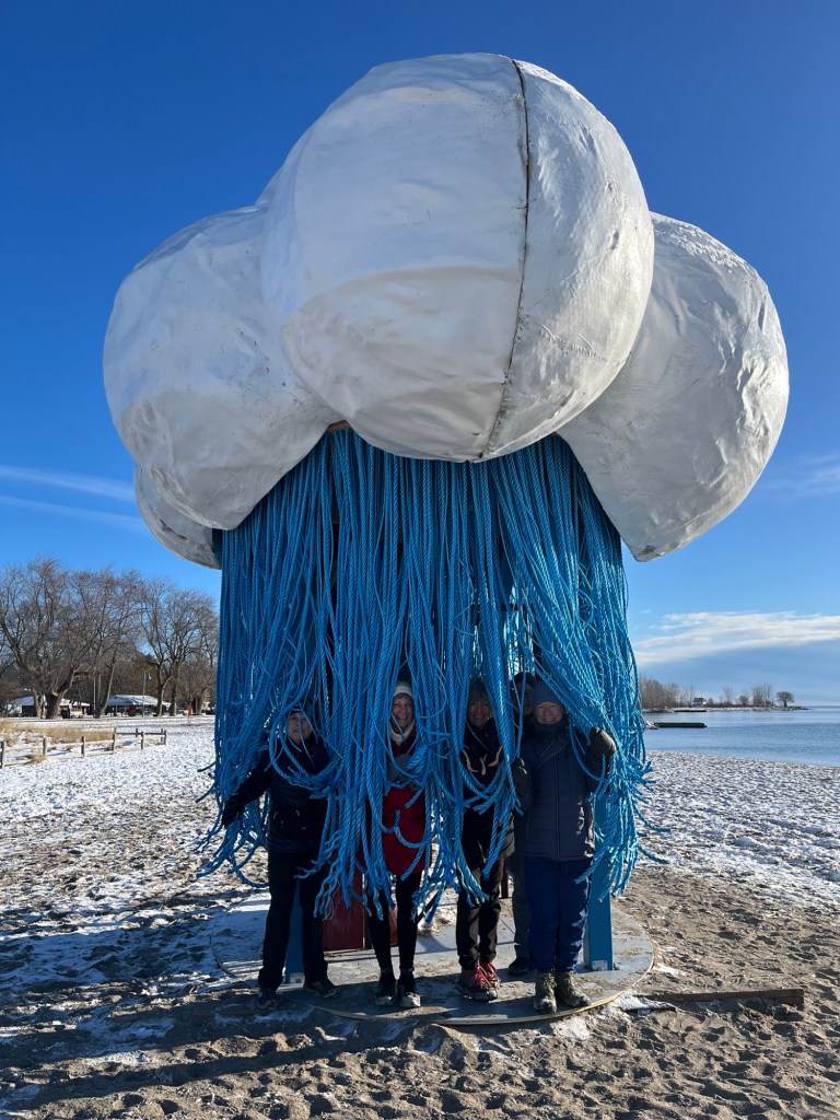 WINTER STATIONS WALK!!! I suggest a group walk* (11k) Sunday, Feb 25 to check out the whimsy! Because there is ALWAYS MAGIC at sunrise, I propose that we meet at at 6:55am at the washroom building immediately south of the east parking lot off Northern Dancer Blvd/ Lake Shore Blvd E. to be at the beach for sunrise at 7:02am. (Note: These washrooms will not be open 😥) We can check out all the beach installations and then continue through the Kew Gardens, enjoy a few hills north of Queen as we make our way to Ivan Forrest Gardens, continue walking a few more hills to make our way south to Balmy Beach Club, then follow the boardwalk/trail west to see the installations at Woodbine Beach. The earlier we get out there, the less likelihood for crowds!