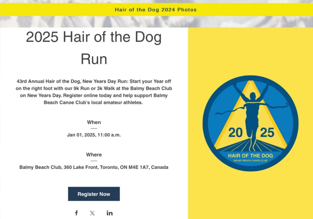One of our favourite annual events! The Hair of the Dog 9k race out of Balmy Beach has its registration open! JANUARY 1!!!! Note that if you register your lunch is included. You can buy an extra lunch ticket for someone who is not racing.