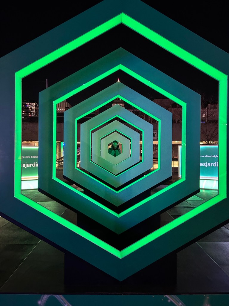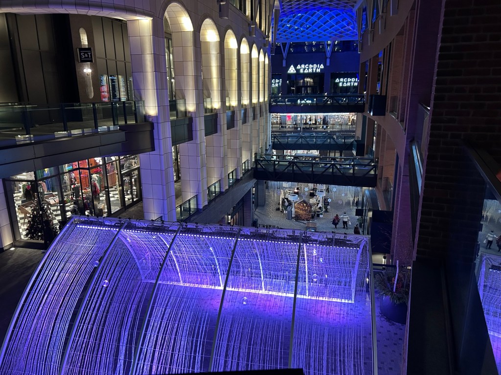 It was a cold evening for a walk last Thursday but well worth it! The Well is an interesting destination, and unexpected at least for me. For those who have not been, imagine a mall with a roof but open to the outdoors. A hot today stand was gratefully patronized. A short walk after took us to City Hall to see the lights. Fingers and toes did finally thaw on the subway ride home.
