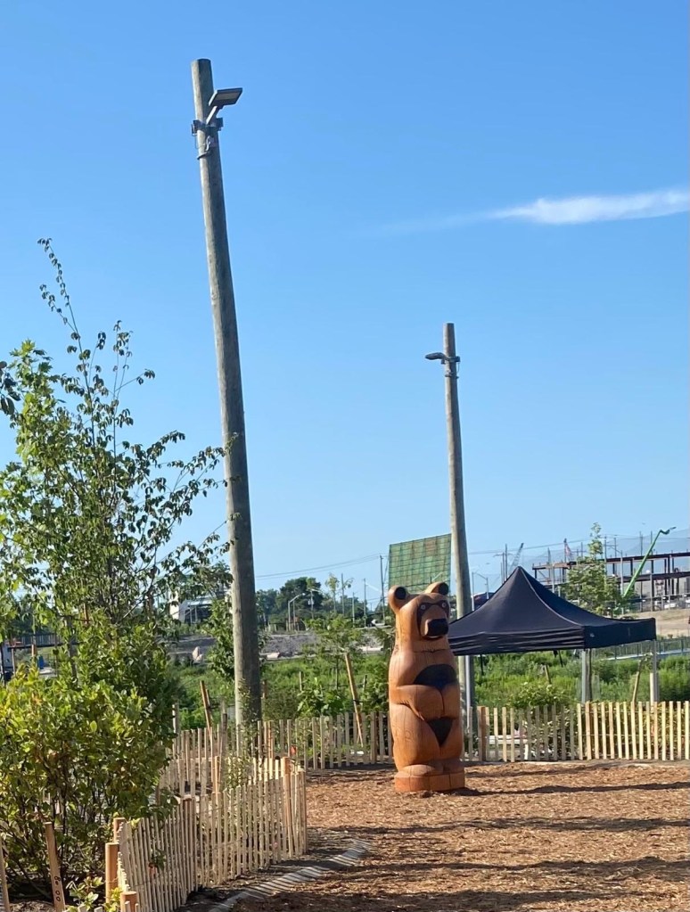 It looks like conditions will be ideal for a walk this Saturday. Let’s meet at Loblaw’s as usual but perhaps we can try going south west towards the brand new Biidaasige Park located on Ookwemin Minising (formerly Villiers Island). We’ve caught glimpses of this development over the past few years, but now we get to see it close up.